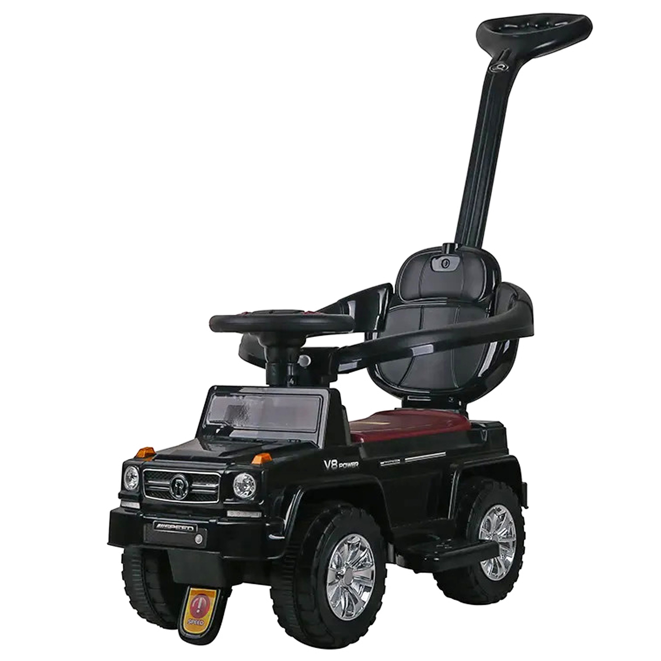 - Steerable Wheels: The front wheels can be controlled by the child's steering wheel or the parent handle.