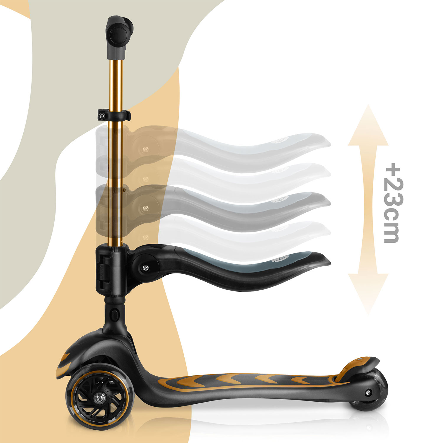 Nukido Flippo Kids 3-Wheel Scooter with Seat, Gold