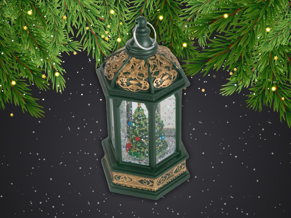 Christmas LED Lantern with Glitter Tree Decoration, Green