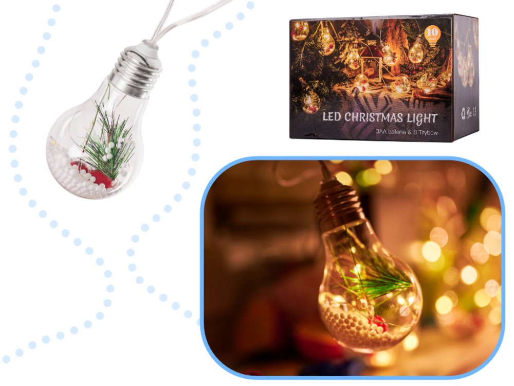 A unique decorative fairy lights in the form of large bulbs with a beautiful decoration inside will decorate any interior and bring New Year's magic.