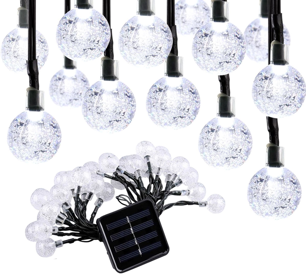 An excellent decorative element for outdoor use (for example, in the garden). The luminaire chain is powered directly from the solar panel and is completely independent of electricity sources.