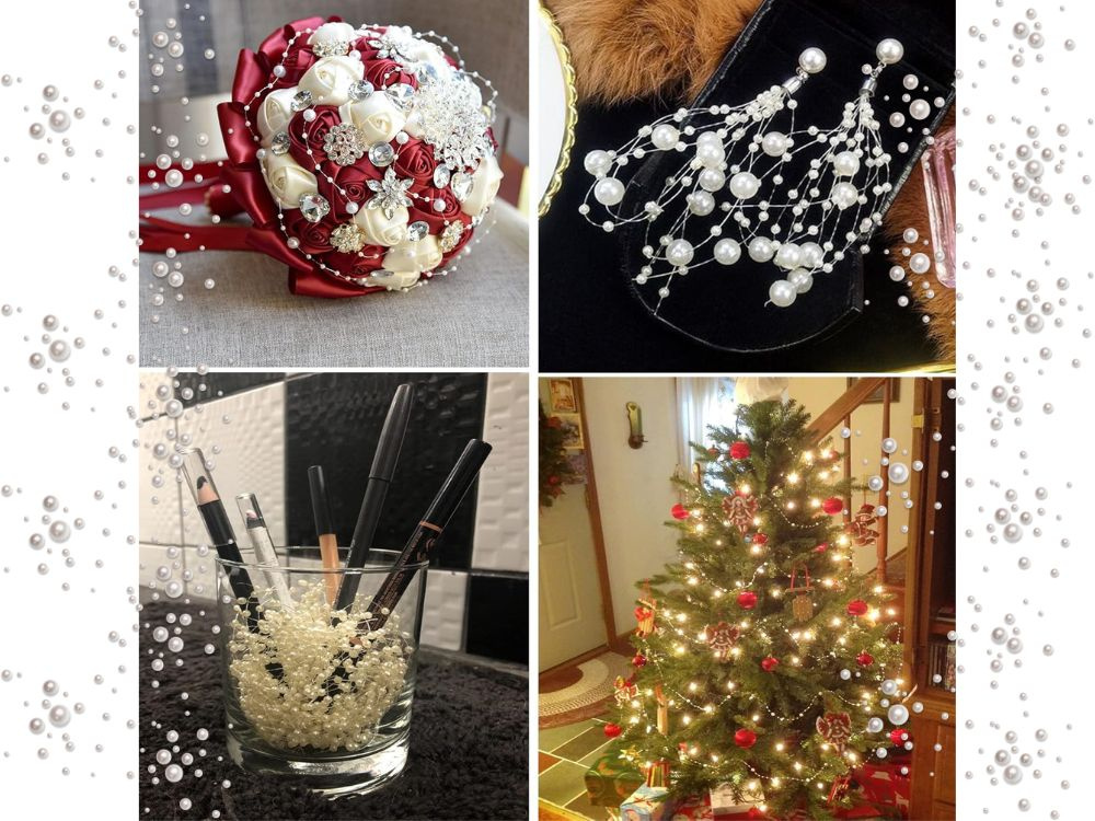 The garland's lustrous white pearls catch the light beautifully, creating a warm and inviting atmosphere. This beaded garland is not just for the tree; weave it into wreaths, drape it across a mantelpiece, or create stunning table centerpieces. Crafted with attention to detail, it features a combination of larger 8mm beads and smaller 2mm accents for added texture and visual interest.