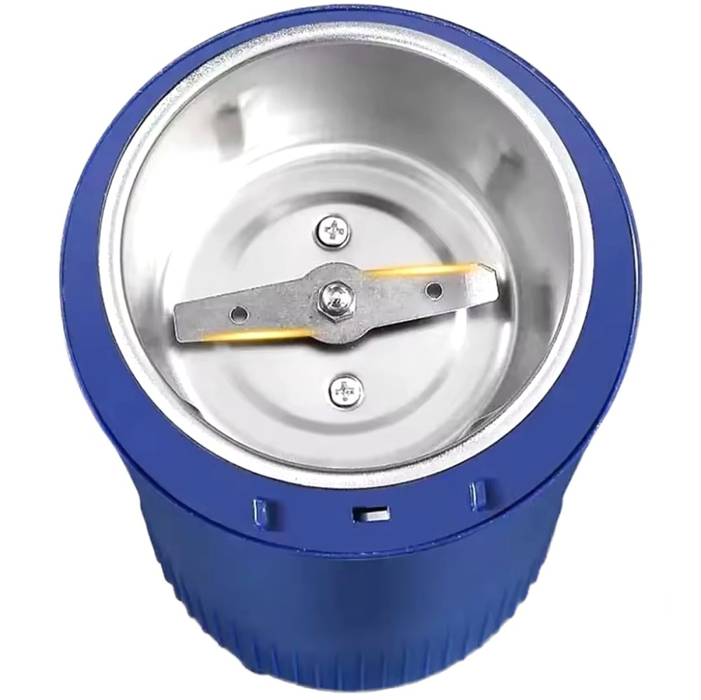 - The grinder is equipped with a steel, double-winged knife that successfully grinds grains.