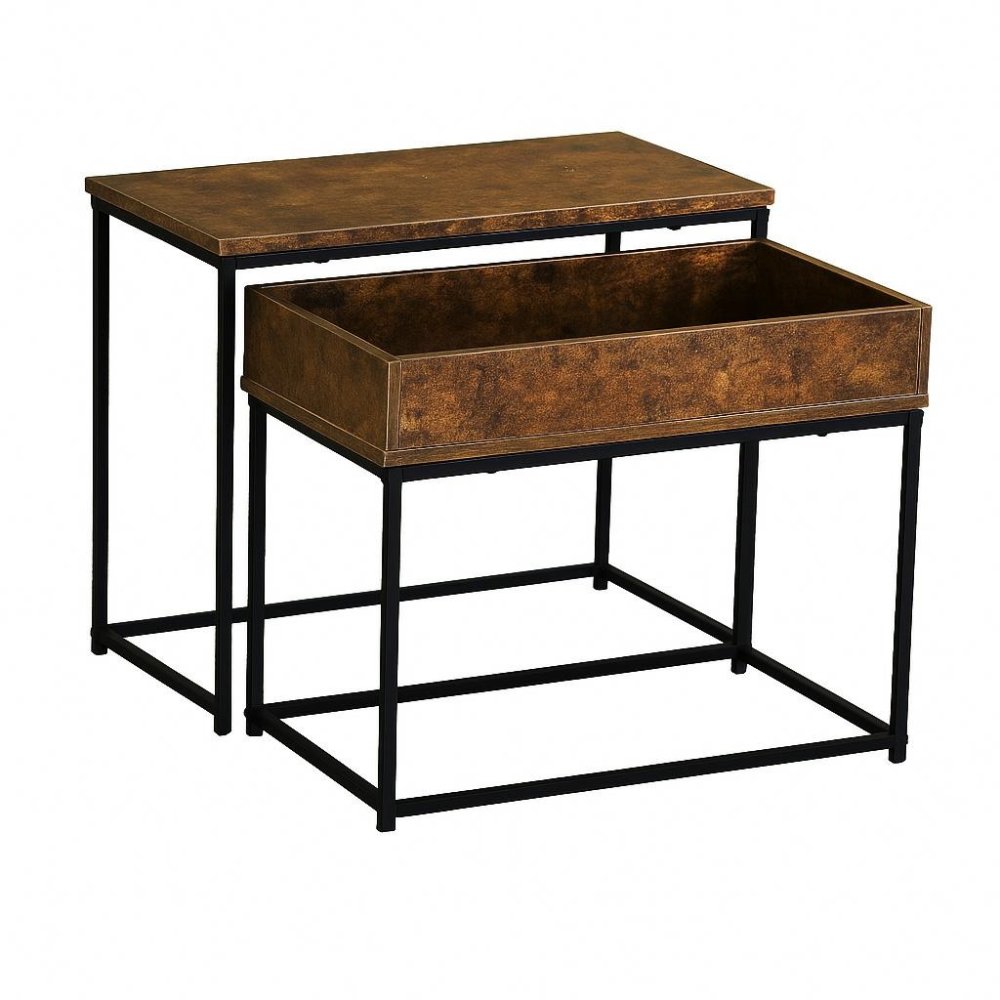 Discover the perfect blend of style and function with this nesting coffee table set of 2. Featuring a sturdy metal frame and a natural wood-colored top, these modern tables are an ideal addition to any living room, offering both elegance and practicality.