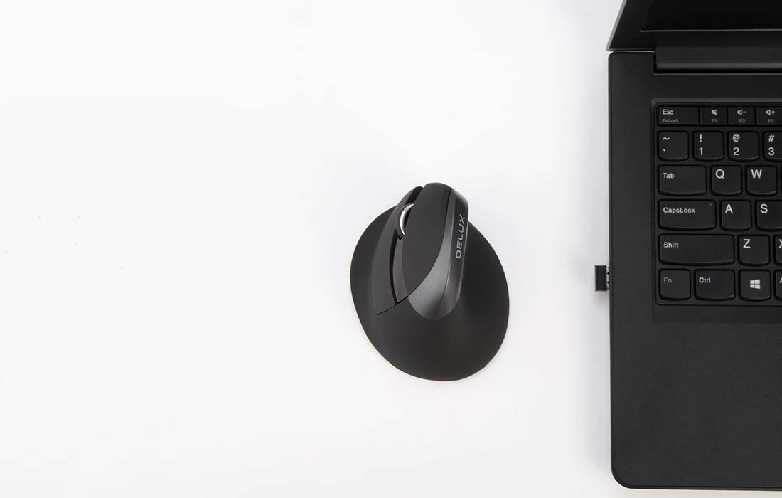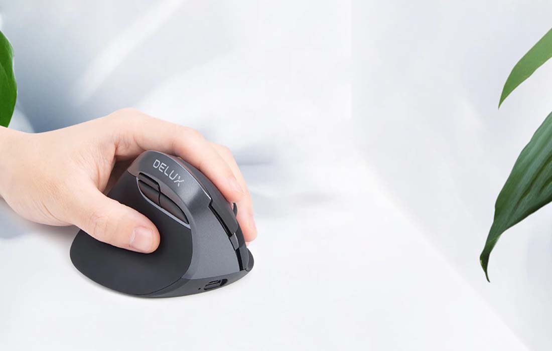 Delux M618ZD BT+2.4G Wireless Vertical Computer Mouse for Left-handed, Black