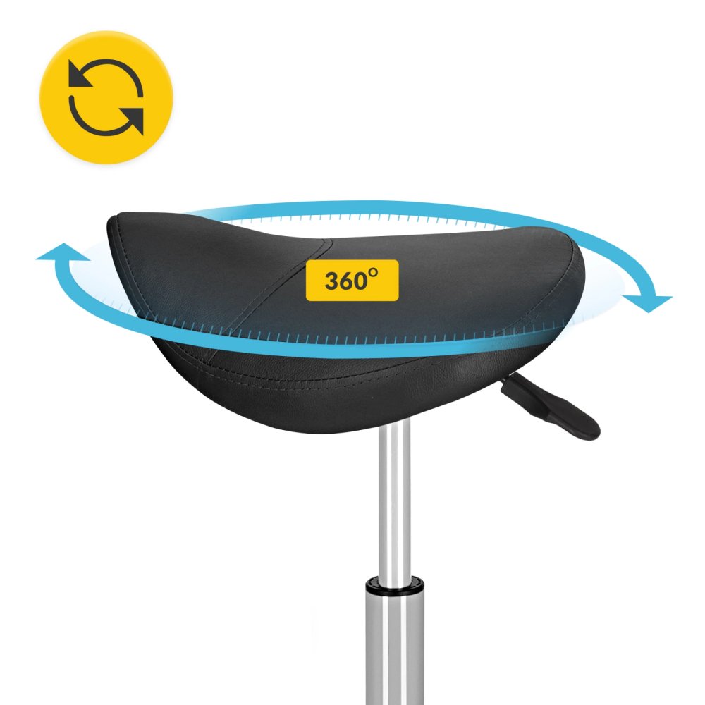 - Saddle-shaped seat: ensures proper body weight distribution and helps prevent back fatigue.