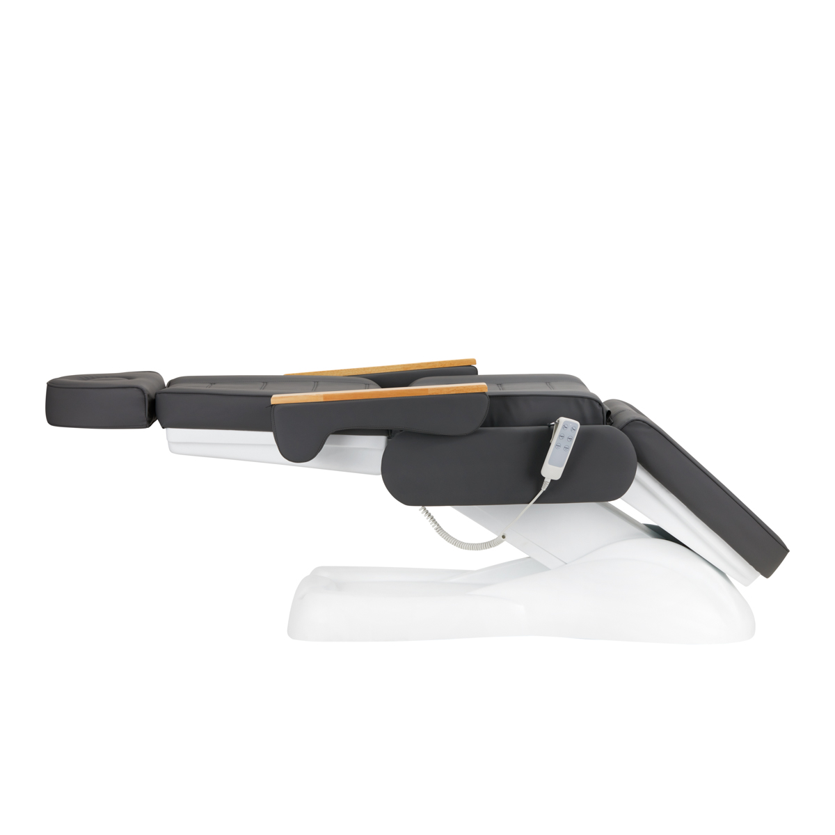 Using the intuitive remote, the chair can be smoothly adjusted in three planes – height, backrest angle, and footrest angle. This allows freely setting the position according to the treatment being performed, enhancing comfort for both the client and the practitioner.