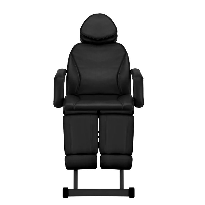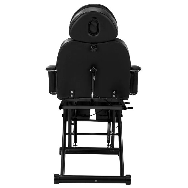 The base of the chair has a constant height , so the seat is at a constant level, which should ensure comfort during use. A solid metal frame in shades of black provides the necessary stability during use . The headrest extends by approximately 15 cm and provides excellent head support , regardless of the client's height. This allows you to freely perform various types of treatments , including cosmetology, physiotherapy and tattooing.