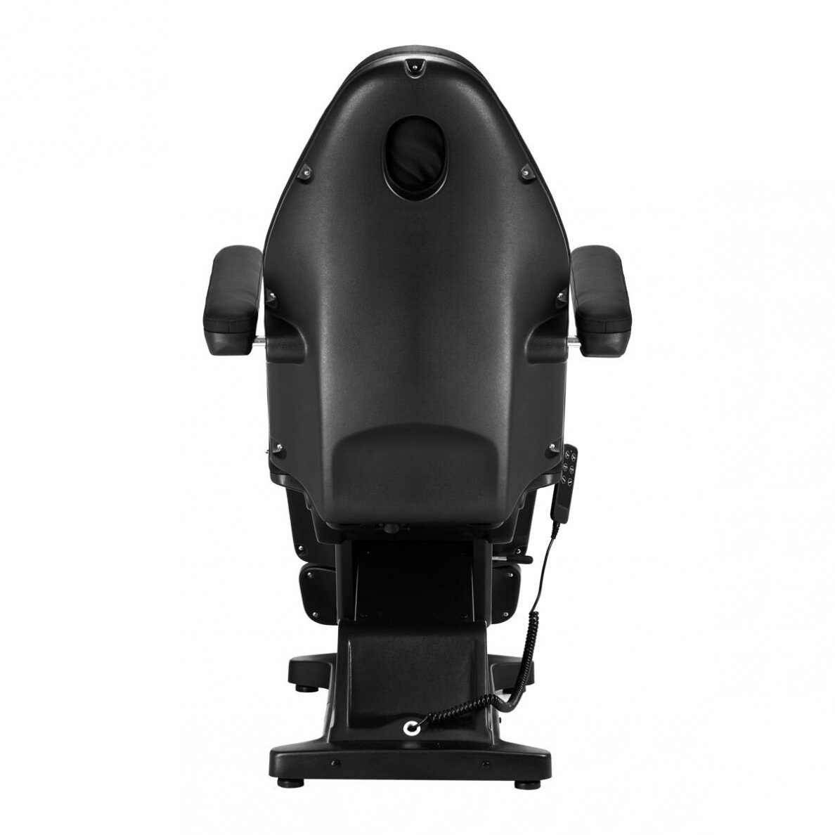 Using an easy-to-use remote control, the chair can be smoothly adjusted in three dimensions - it has height, backrest and cradle adjustment. The seat can be adjusted to a height of 56 cm to 81 cm, and when fully unfolded, the chair reaches a length of 2 m . These dimensions allow the equipment to be easily used by people of different heights and enable it to be adapted to the needs of both the client and the person performing the procedure. The handles on both sides of the seat allow you to hang the remote control so that it is always at hand.