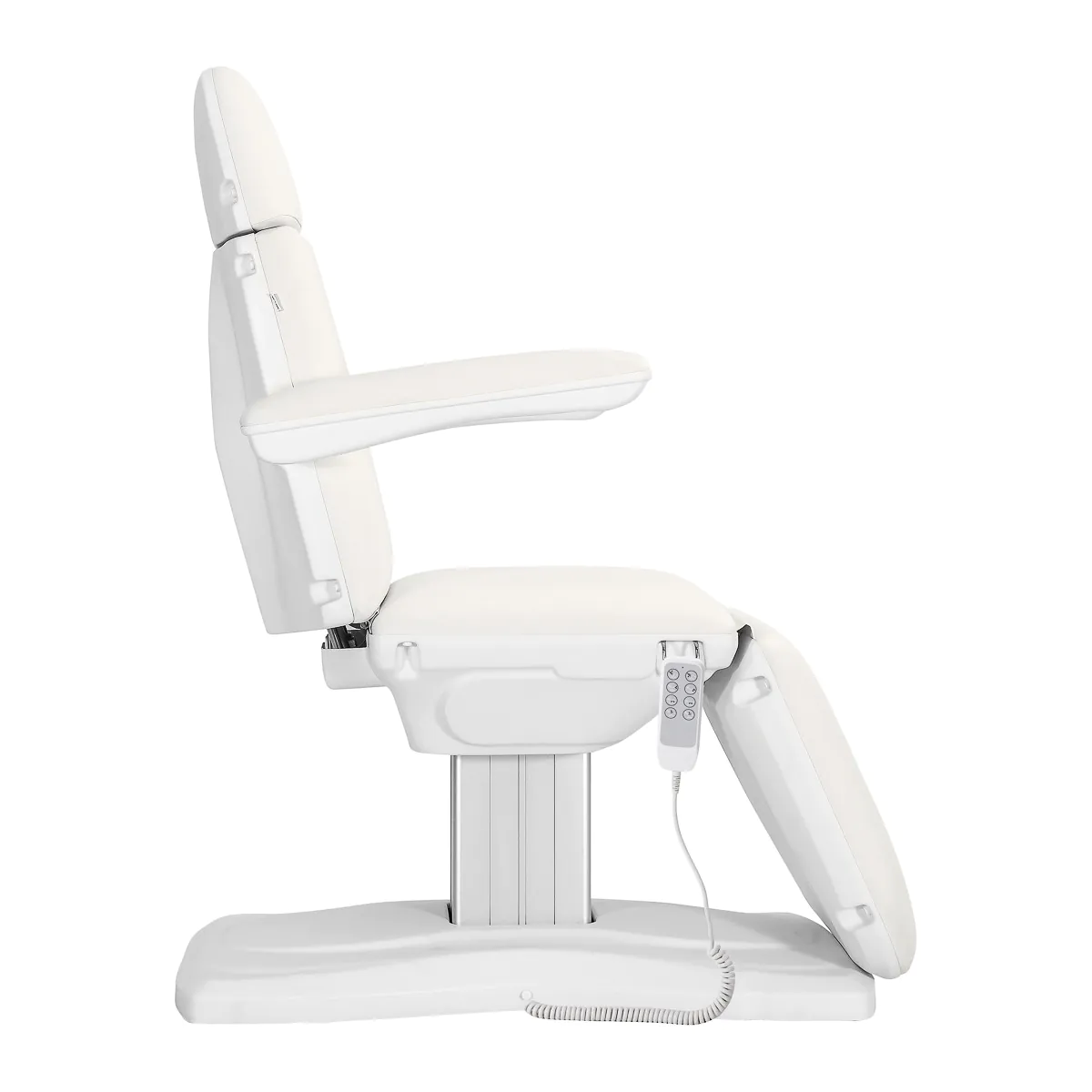 The Sillon Eclipse electric cosmetic chair with a modern design is equipped with four actuators controlled by a wired remote. Intuitive adjustment allows for smooth positioning, making it perfect for a wide range of treatments in professional beauty salons and medical practices.