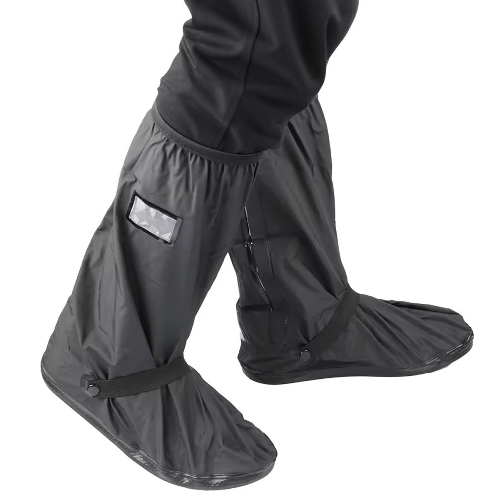 Waterproof protectors for motorcycle boots. They perfectly protect your footwear from getting wet while riding. Made of waterproof PVC material with additional rubberization on the bottom. Fastened a convenient zipper. Equipped reflective elements and snaps to prevent slipping.