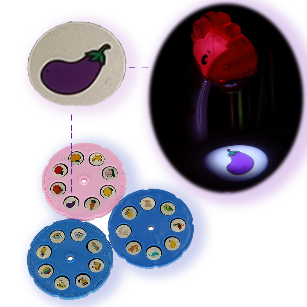 How does the drawing projector work? First, it needs to be assembled, insert 3 AA batteries, then choose one of the three discs with images and insert it into the giraffe's snout.