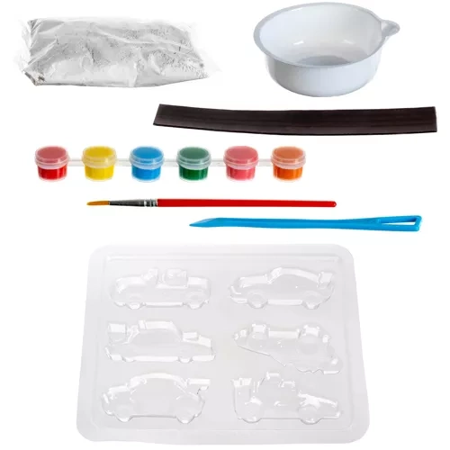 This set is a wonderful gift for any child with an artistic soul. Working with plaster is a fantastic experience, allowing kids to create various shapes and then paint them according to their own unique ideas. It’s a complete kit for creatively making car-shaped magnets, perfect for both boys and girls.