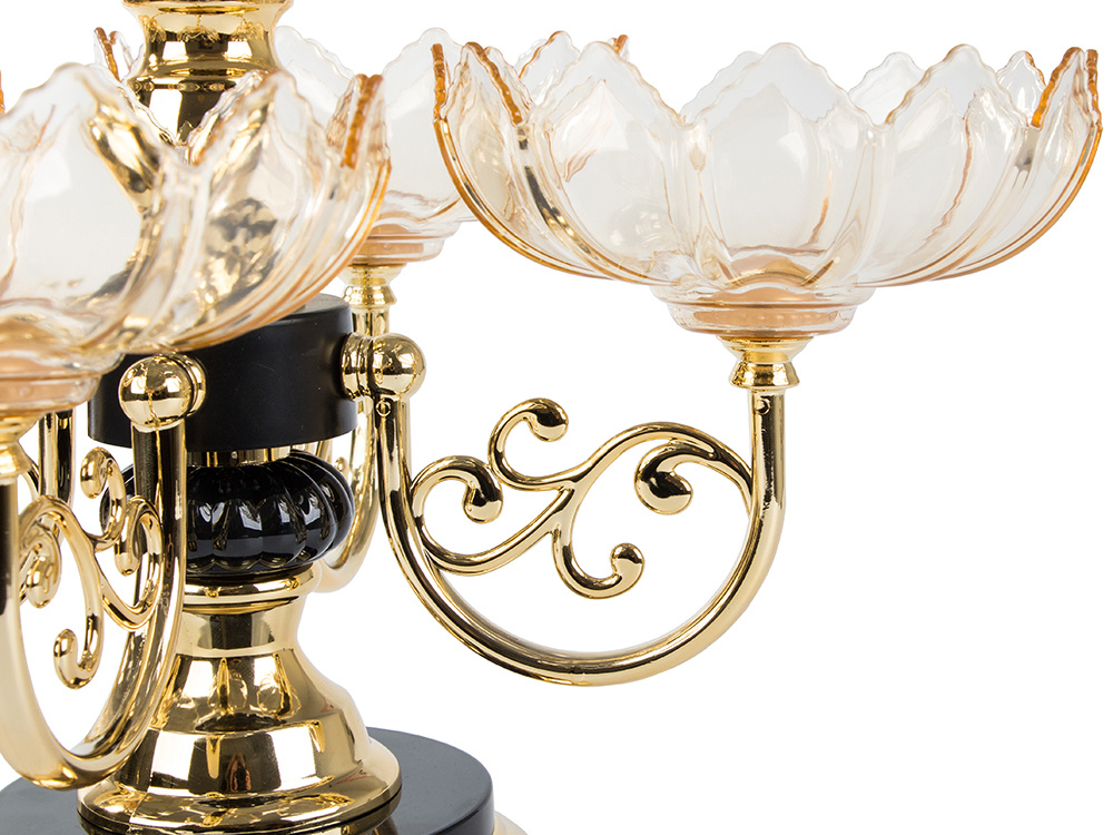 Our elegant platter has been fitted with five bowls , four of which are mounted on a swivel mechanism making it easy to serve snacks to our guests.