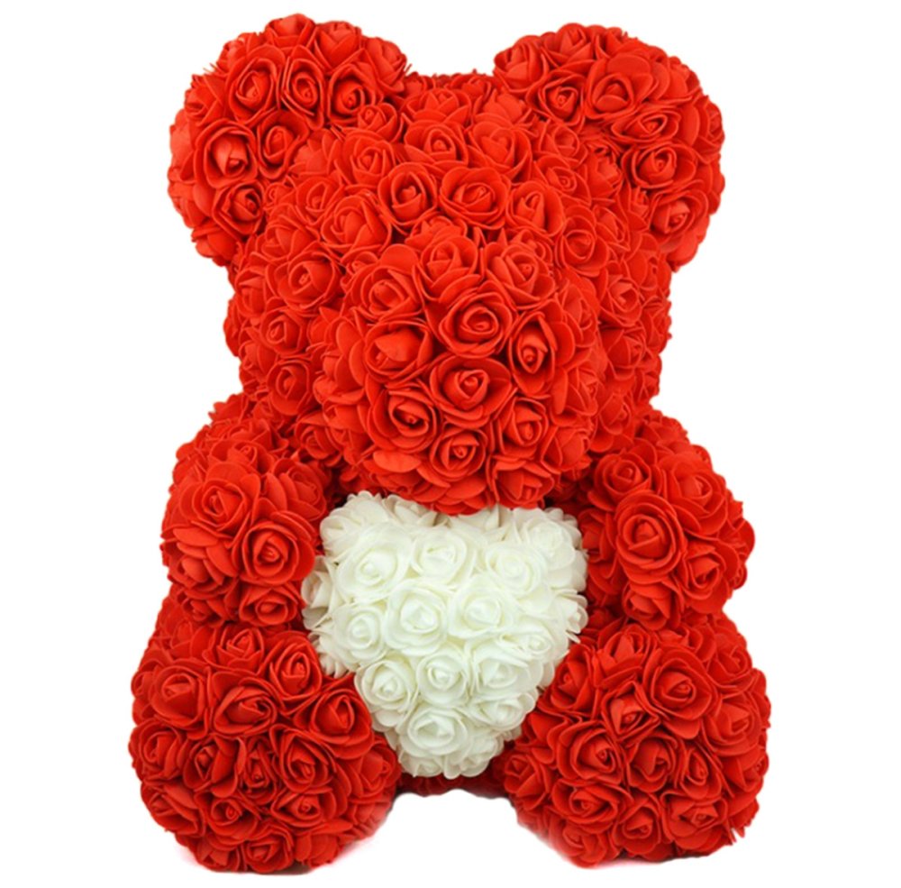 - Charming Design: A red rose bear holding a contrasting white heart.
