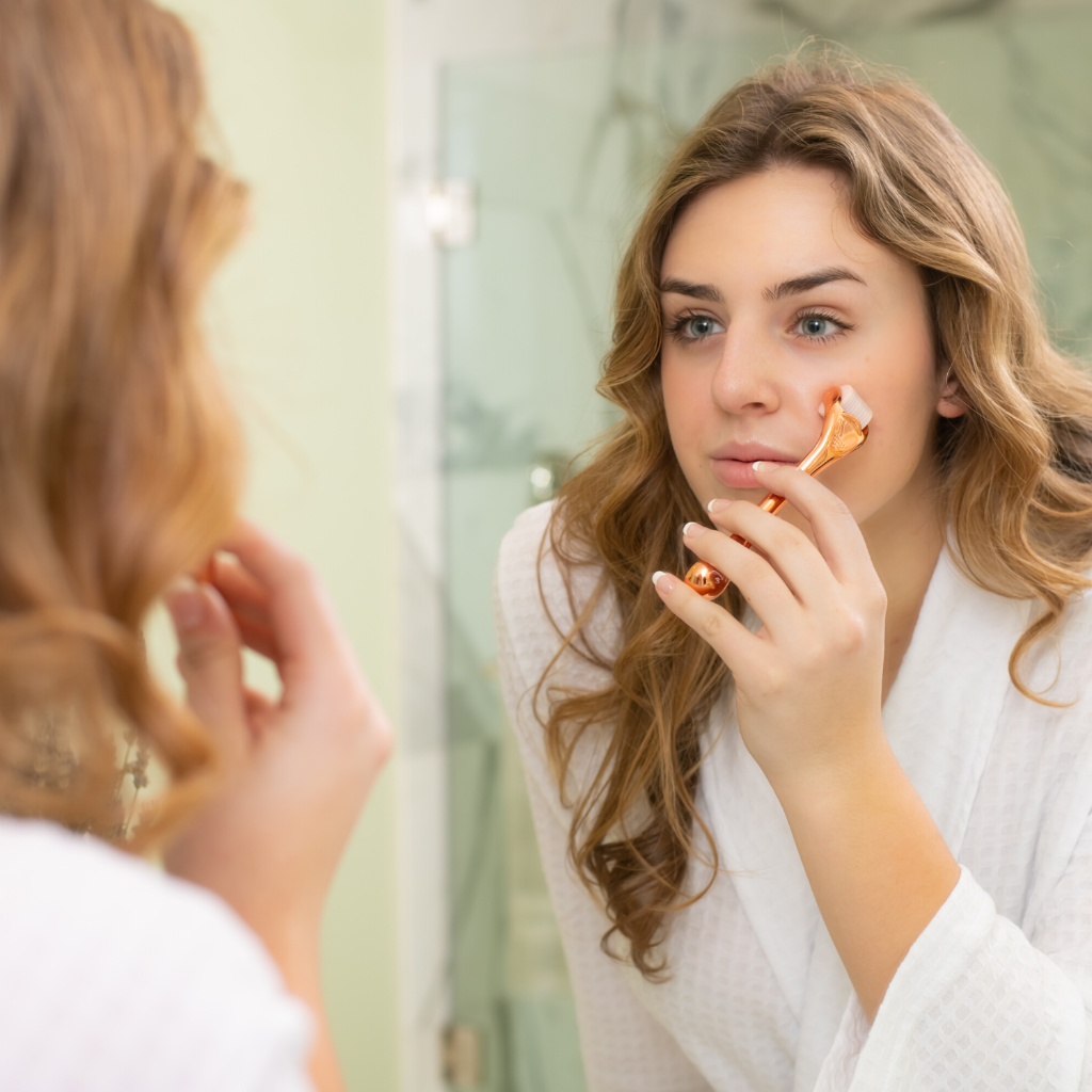 Derma Roller Face and Body Massager Needle Mesotherapy 0.25mm, Rose Gold