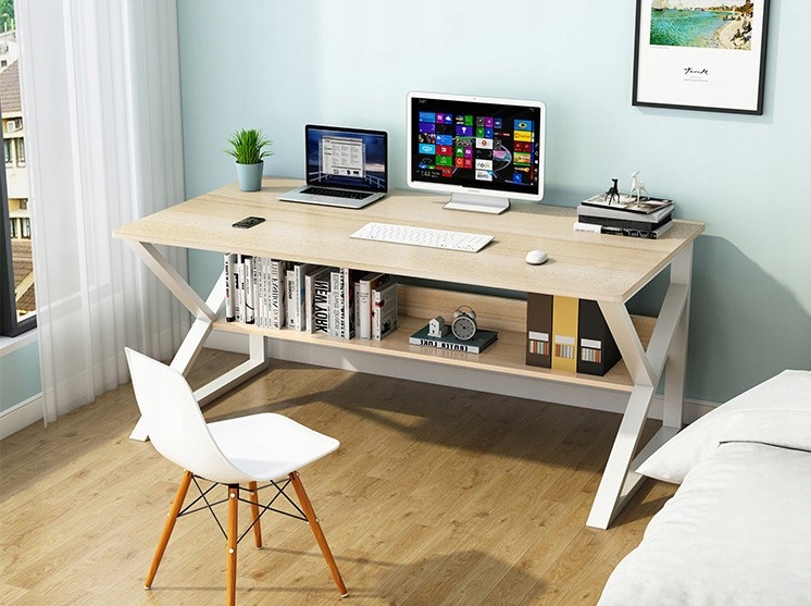 Computer and office desk with shelf, 100x60 cm, light brown/white