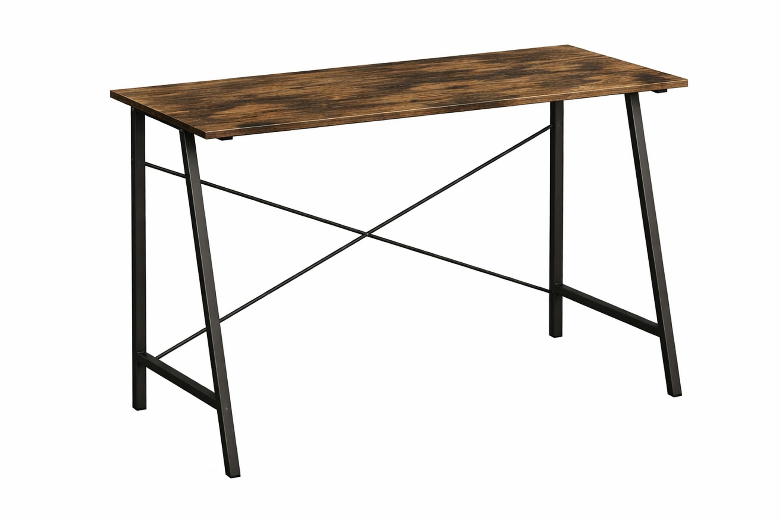 Crafted for durability and stability, this desk features a robust steel frame with a cross-brace design that prevents wobbling. The spacious tabletop is made from high-quality particleboard with a scratch-resistant melamine finish, replicating the rich look of rustic dark wood. This sturdy construction ensures it can handle your laptop, books, decor, and daily essentials with ease.