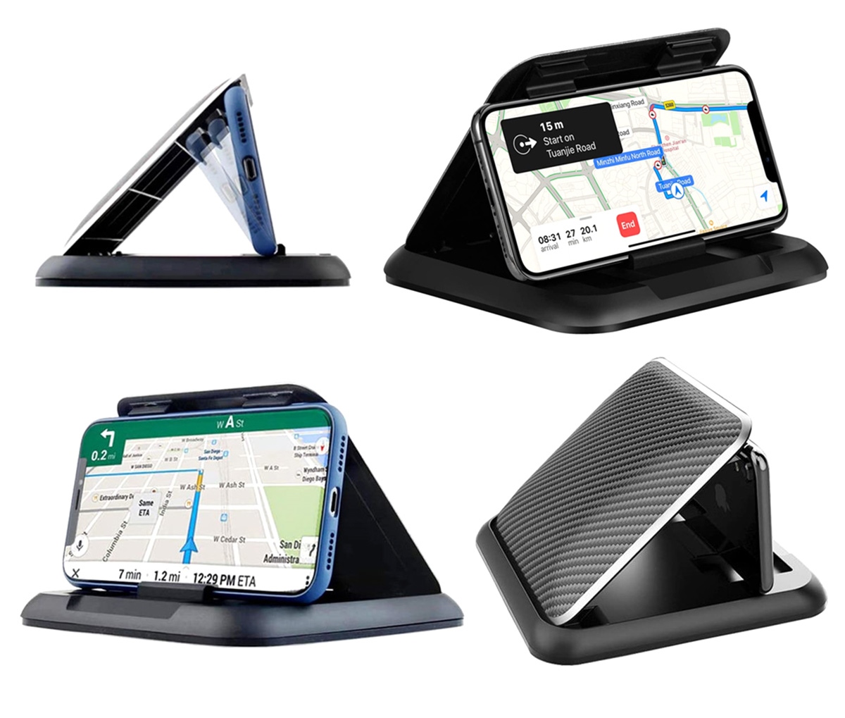 Universal Car Phone Holder with 3-Way Angle Adjustment and Gel Pad, black