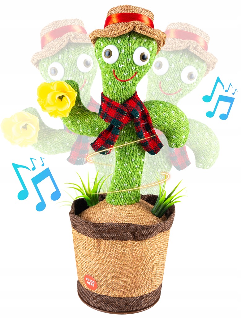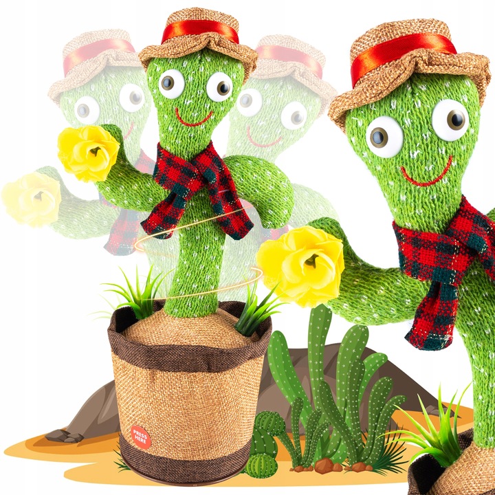 The singing cactus has a large number of songs in its database - 120 built-in song fragments, thanks to which it does not get bored quickly. Switch tracks at any time with just one button!