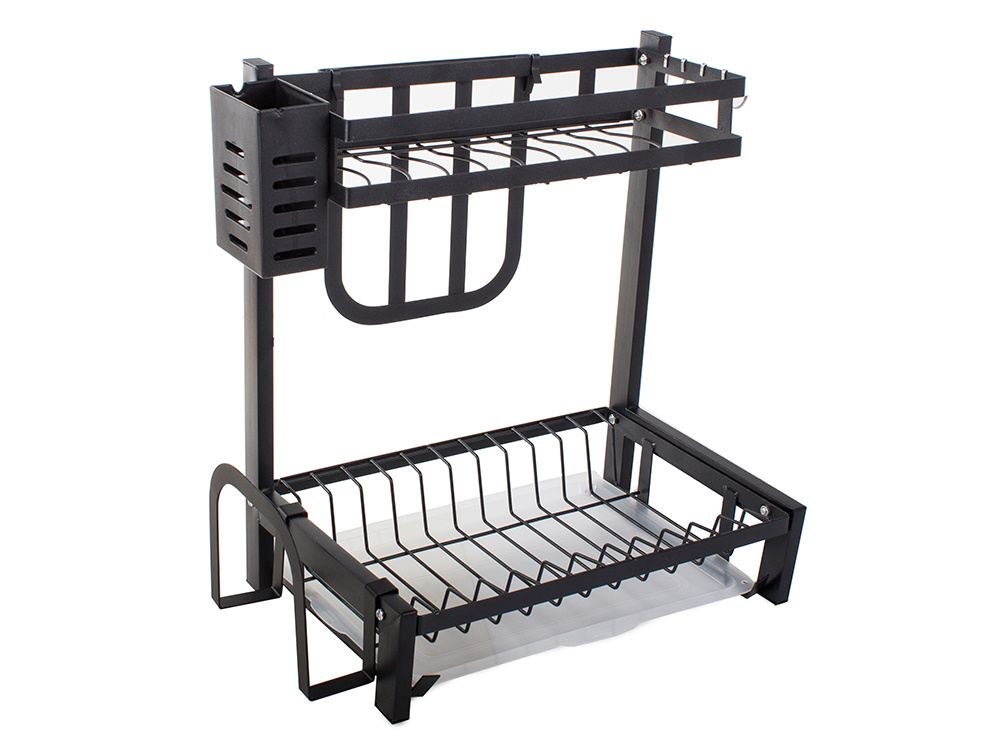2-Tier Dish Drying Rack with Cutlery Holder and Knife Organizer, Black