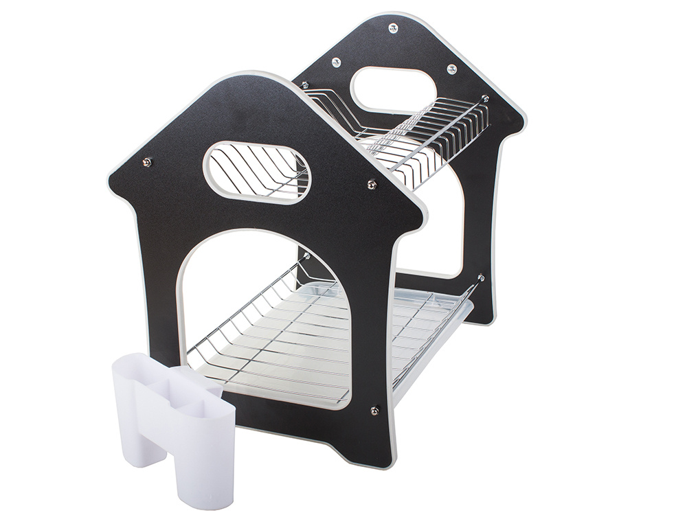 The stable construction with a convenient large base ensures that water doesn't drip onto your countertop, protecting your furniture. The standing dish dryer is an essential piece of equipment in any kitchen. It is highly practical and can accommodate plates, bowls, and glasses, offering two drying levels.