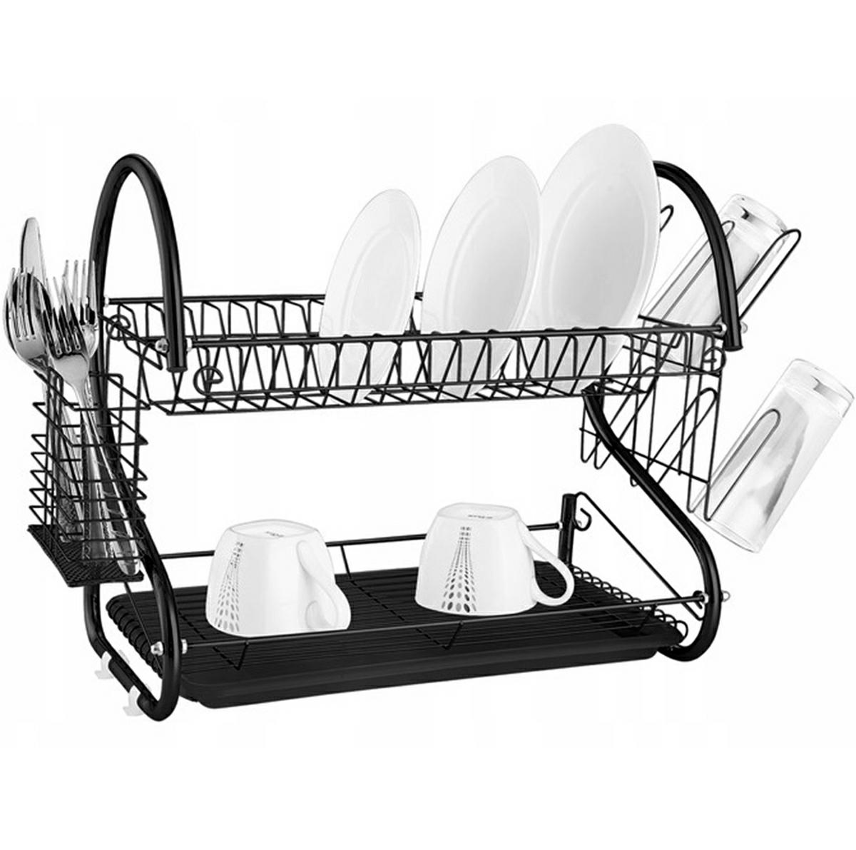 Two-level Double Metal Dish Dryer Rack Shelf, Black
