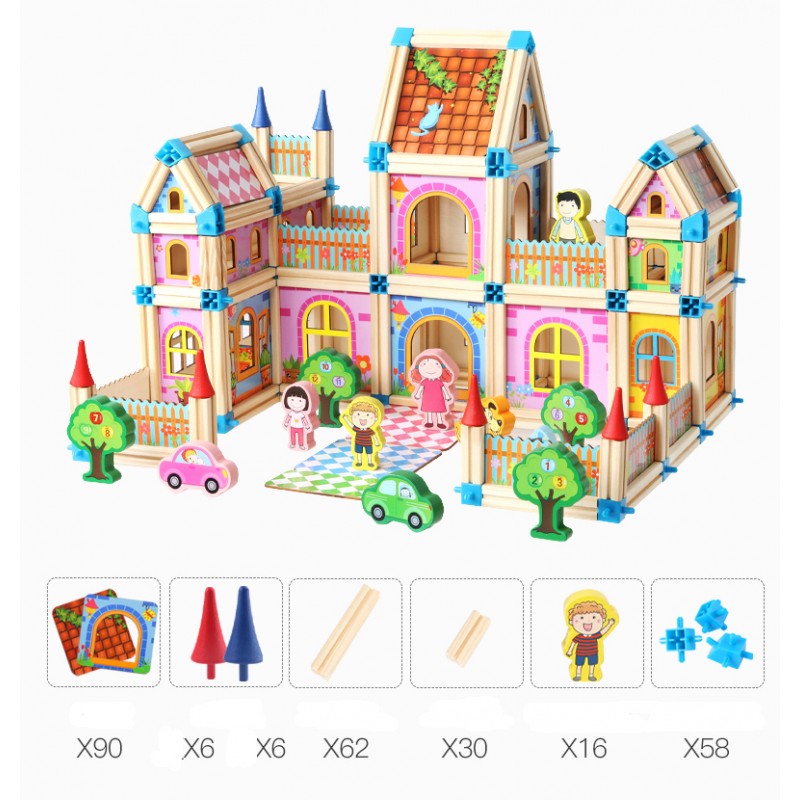 268 Pcs Wooden Building Blocks Doll House Architect House Constructor Gift for Boys and Girls