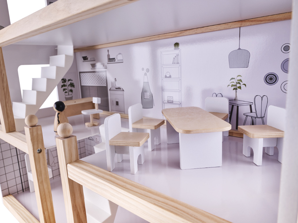 The wooden dollhouse was made with great care and attention to detail, thanks to which it will attract the attention of not only your child, but also yours and people visiting you!