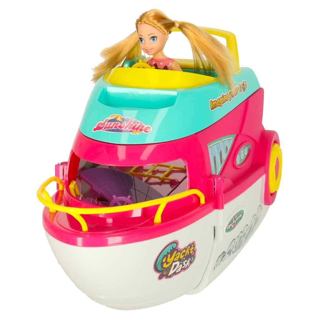 Foldable Doll Party Yacht Playset with Doll and Surfboard