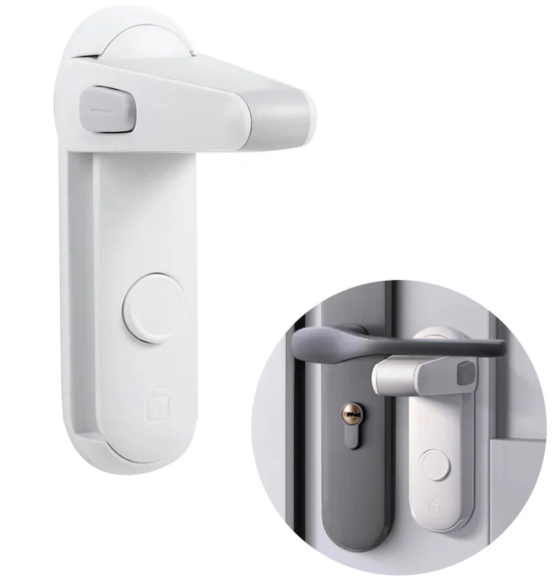 Handle protection to prevent small children from opening the door or window. It has a large base that allows solid installation of security behind handle with double-sided tape. The lock sticks firmly each surface and window frame. arm extends as deep 7 cm, preventing opening. Double-sided buttons (on arm) allow quick unlocking use by appointed persons :)