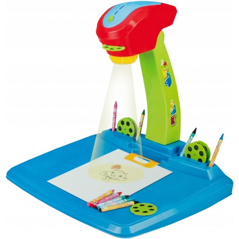 Simply insert a slide disc into the projector, then set your chosen pattern and turn on the projector. The drawing will be displayed on the sheet, and your child will be able to sketch the drawing and color it with felt-tip pens, crayons!