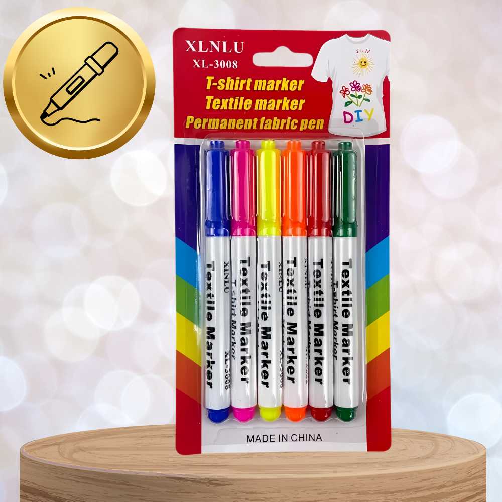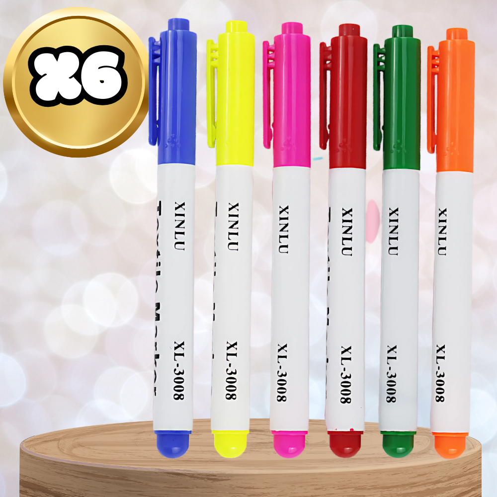 Textile Markers for Clothes Fabrics Set of 6 Colors