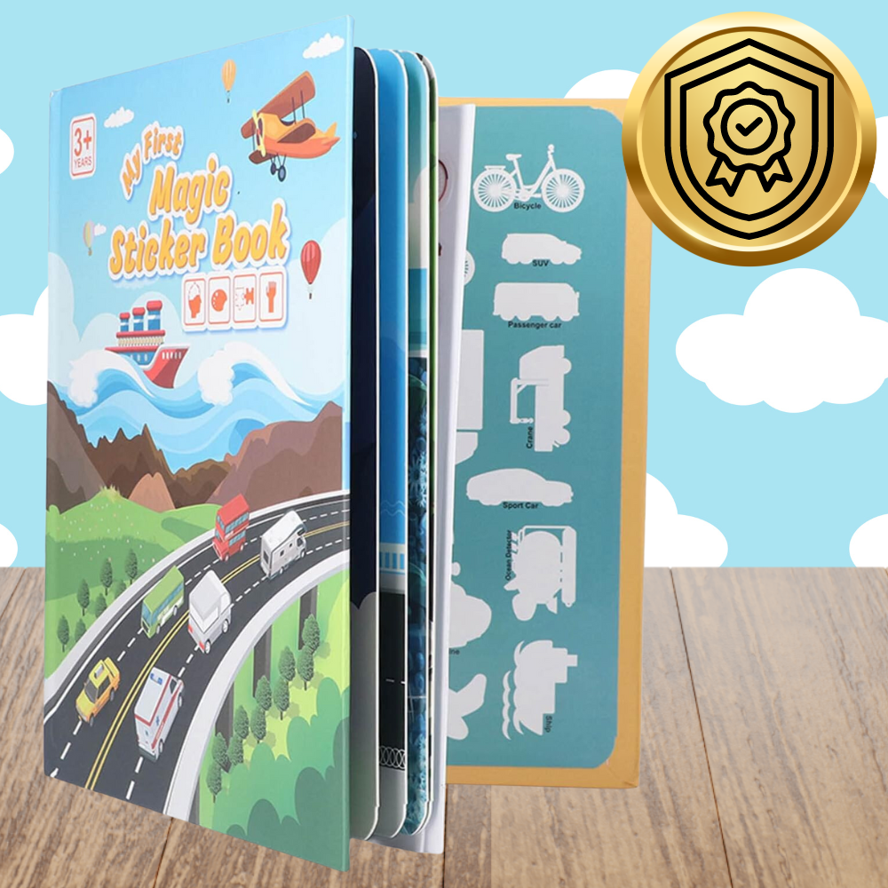 Educational Reusable Sticker Book for Kids Vehicles & Roads Activity Toy
