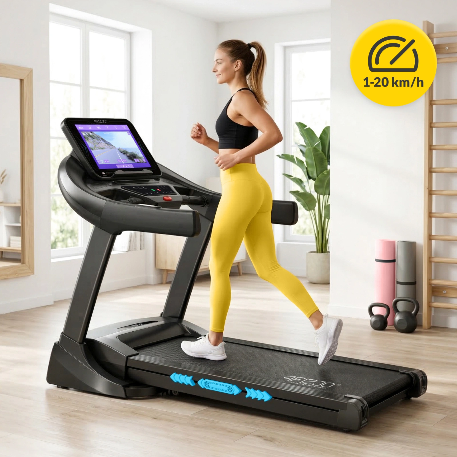Transform your home workouts with the 4FIZJO EVO S electric home treadmill. Featuring auto incline, 24 programs, and advanced shock absorption for peak fitness.