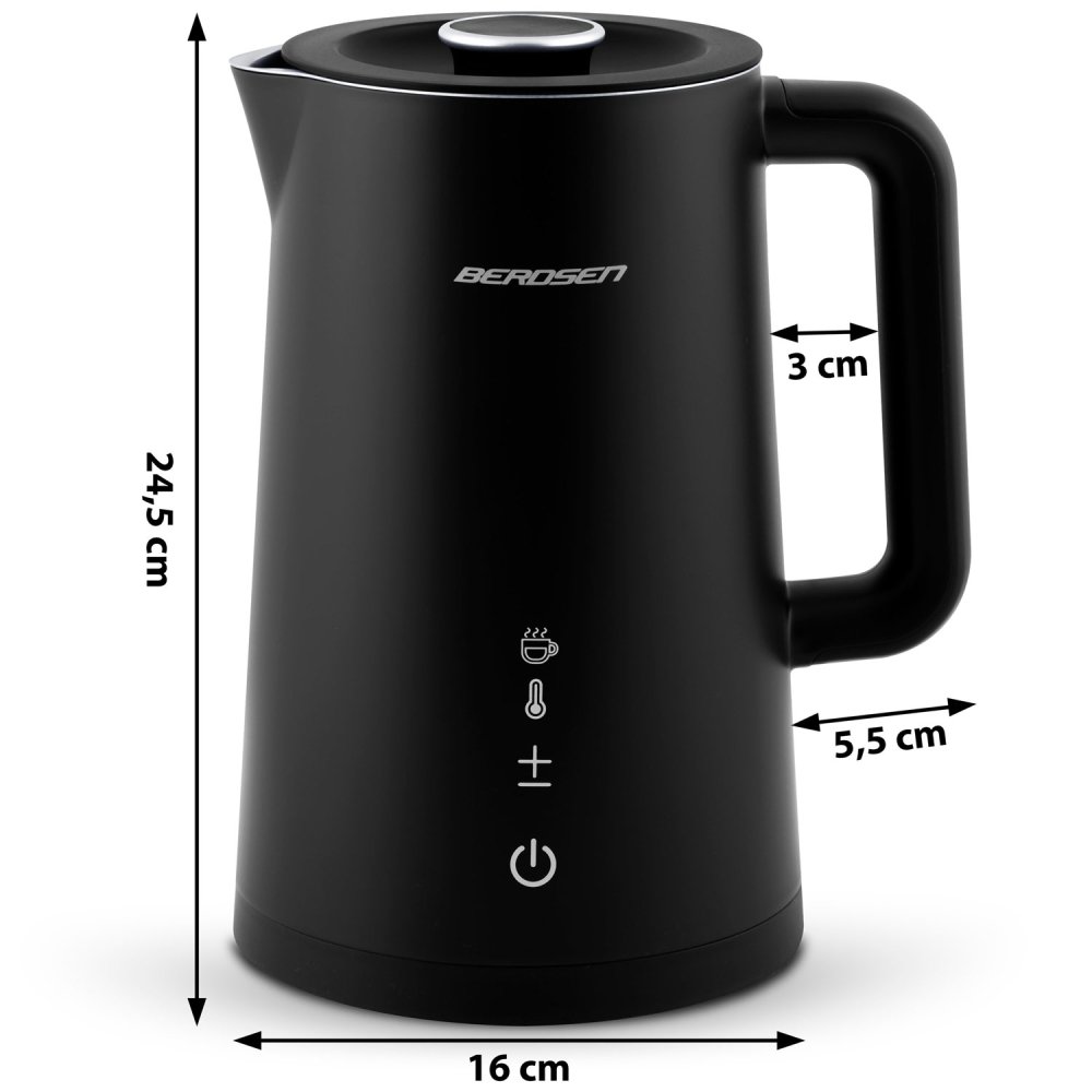 Stylish electric kettle with touch control and 1.7 L capacity. The CoolTouch™ insulated body and SUS 304 stainless steel interior ensure precise temperature settings, user safety, and long-lasting performance.