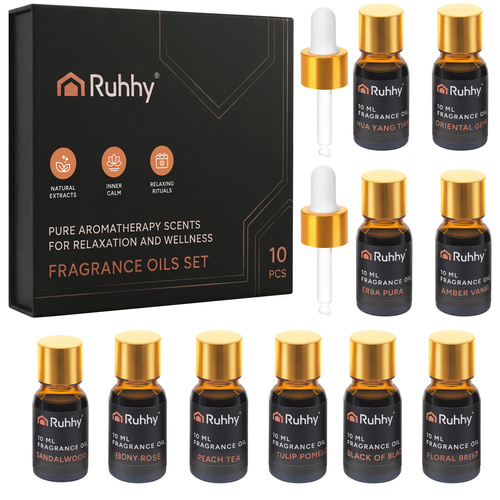 Transform your home with the RUHHY 10x10ml fragrance oils set. Perfect for diffusers and burners, these concentrated scents create a relaxing atmosphere.