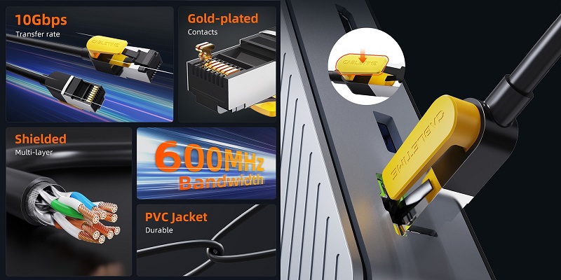 The advanced S/STP (Screened Shielded Twisted Pair) shielding construction provides excellent protection against EMI/RFI interference and signal leakage, ensuring highly accurate and secure data transmission.