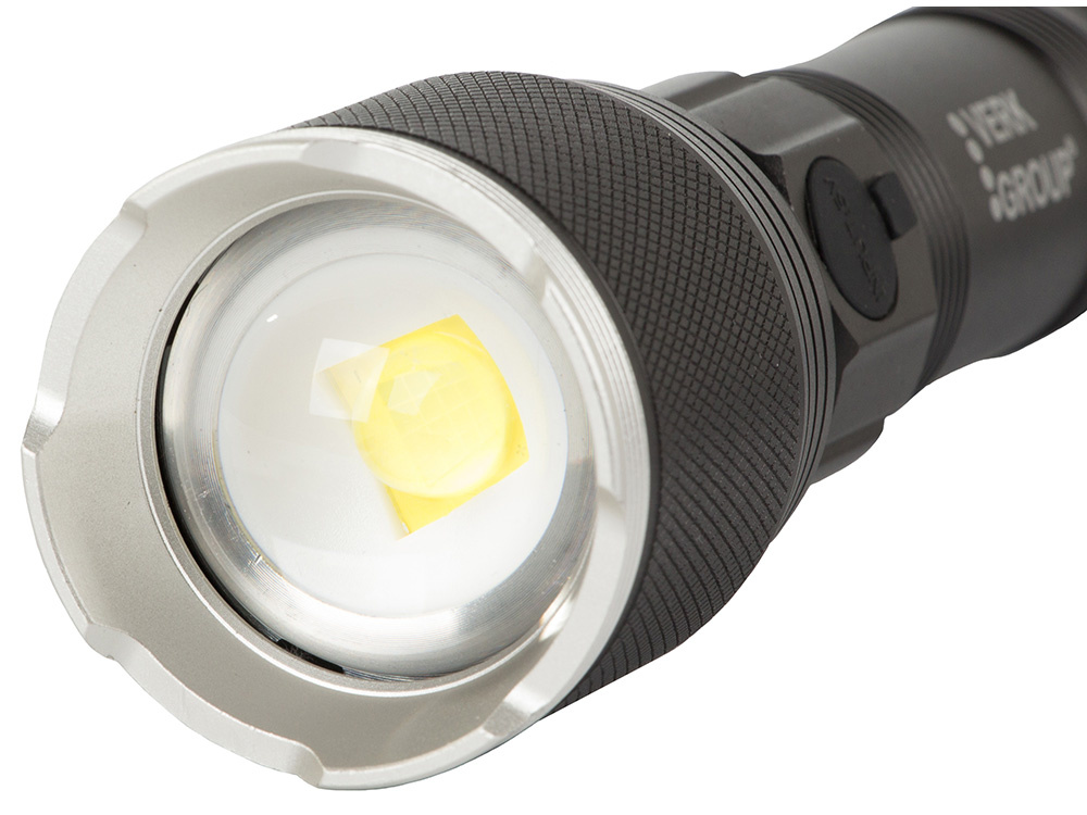 The zoom function allows smooth adjustment from a narrow, long-range beam to a wide floodlight for illuminating large areas.