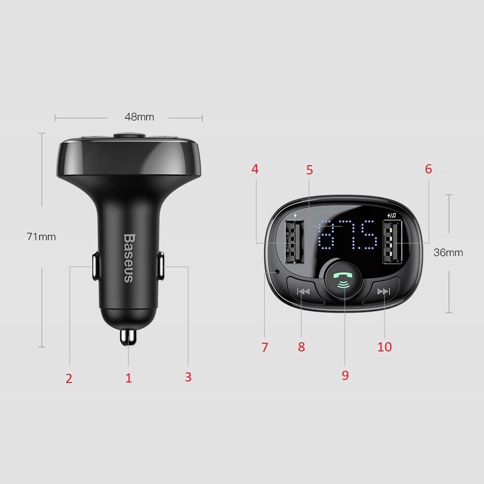 Baseus T-Typed Car charger & Bluetooth Player, FM Transmitter, Black