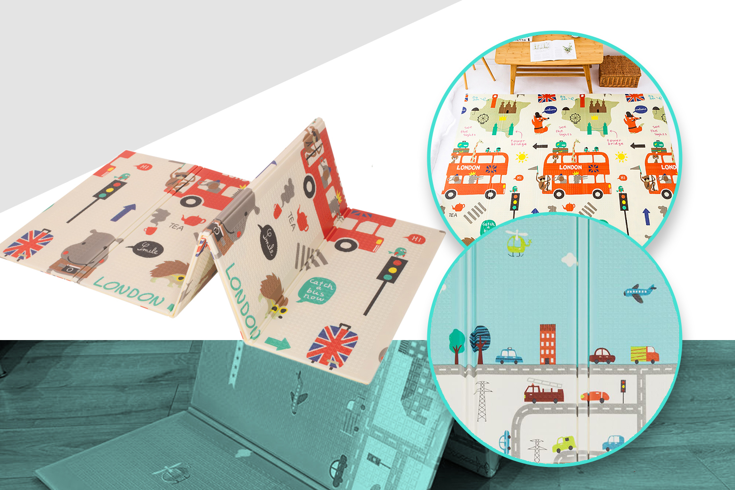 NICEKIDS Double-sided Foldable XPE Foam Play Mat Pad Rug for Kids, 200x150cm, London