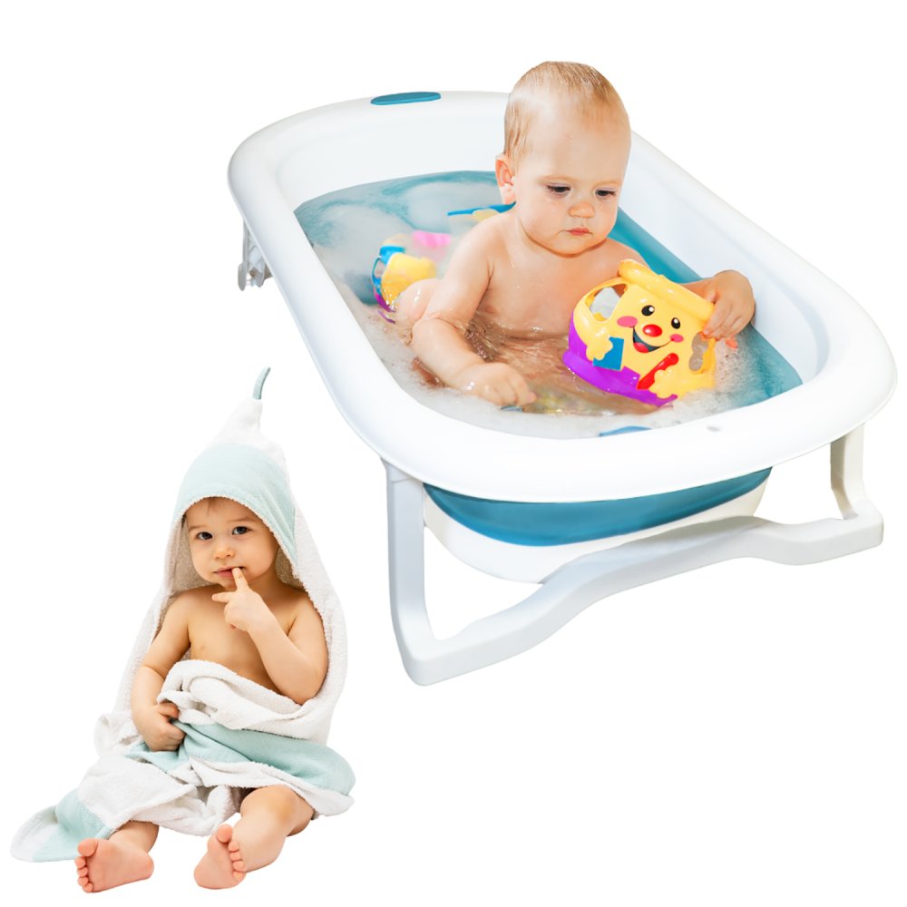 Nicekids Folding Baby Bathtub, Blue/White