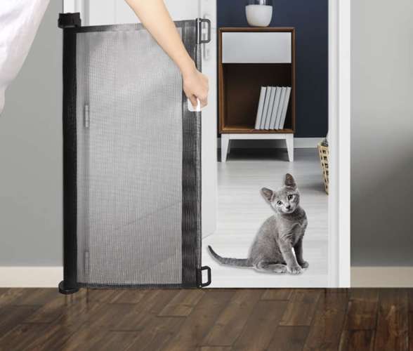 This is a good protection for: stairs, door frames, dangerous passages to the deck or access to hot elements such as stoves and fireplaces. The protective roller blind is made of durable ABS plastic and PVC. It takes up very little space and, thanks to its modern and simple design, will fit well into any interior style of your apartment.