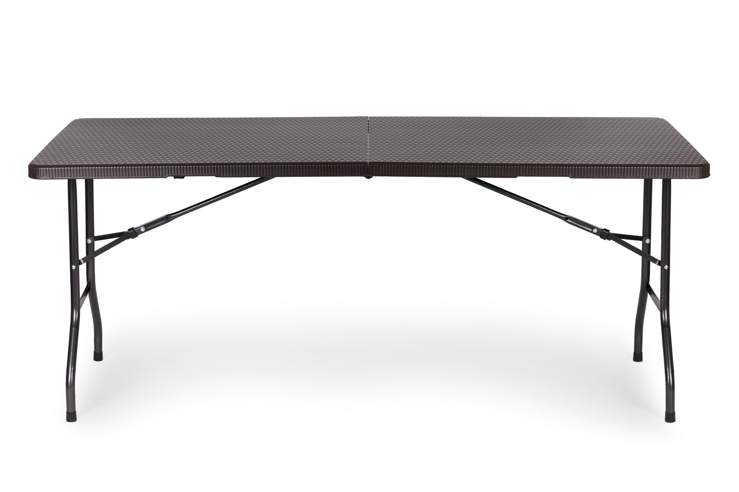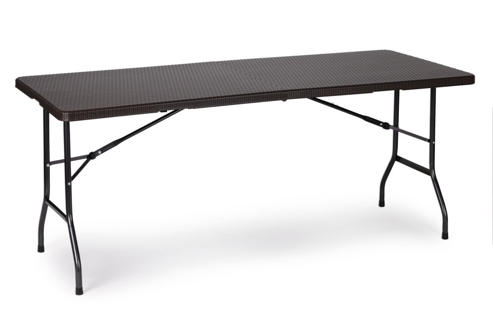 The tabletop features a sophisticated brown rattan pattern, adding a touch of class to your event without the need for a tablecloth. When the party's over, the table folds down to a slim 90x70x9 cm profile, making storage in a closet or garage a breeze. It's the ideal space-saving solution for homes and businesses.