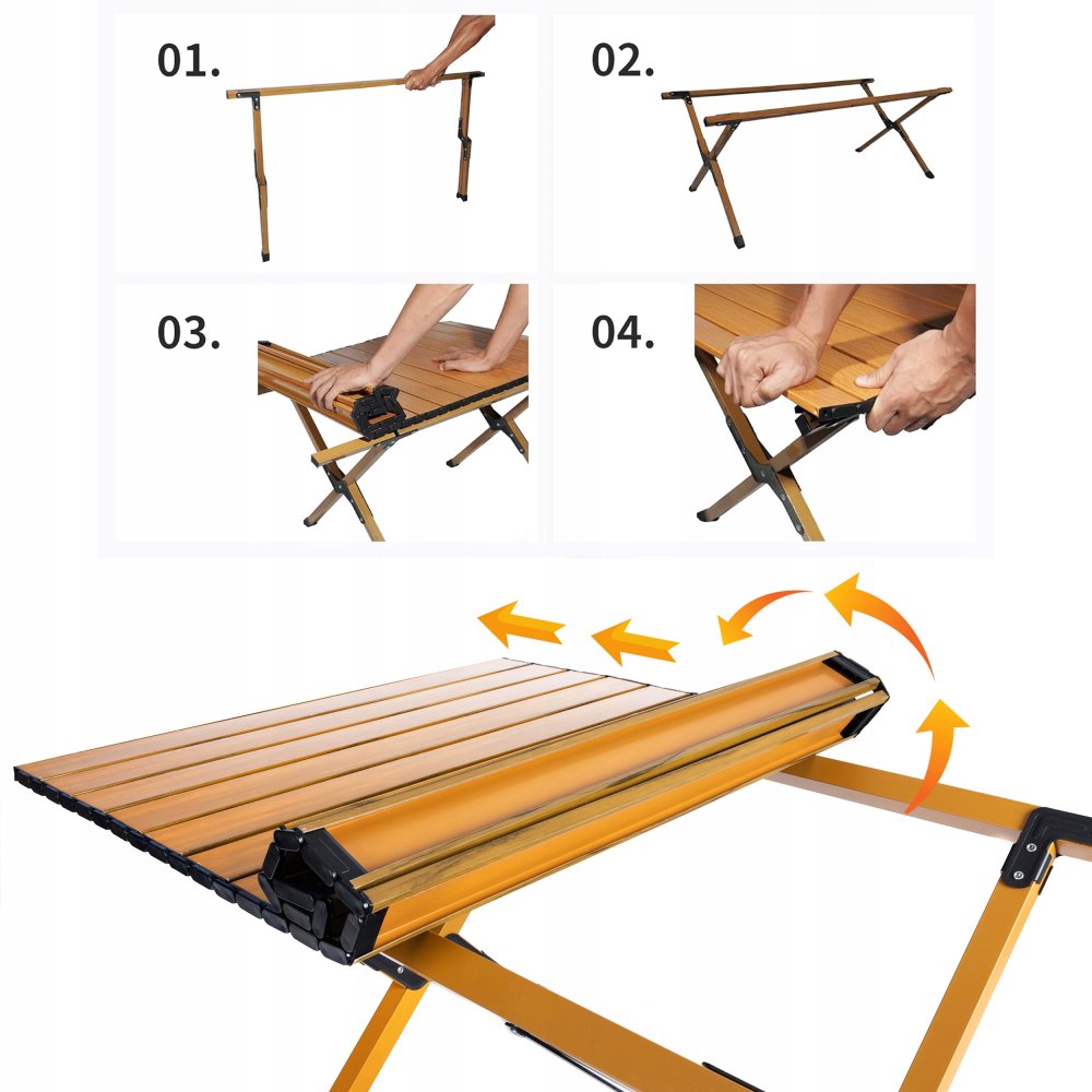 Picnic table with easy to clean top. Assembly is very simple: just extend the legs and unfold the top. The table is made of durable powder coated steel. All this can be carried in a convenient bag (included).