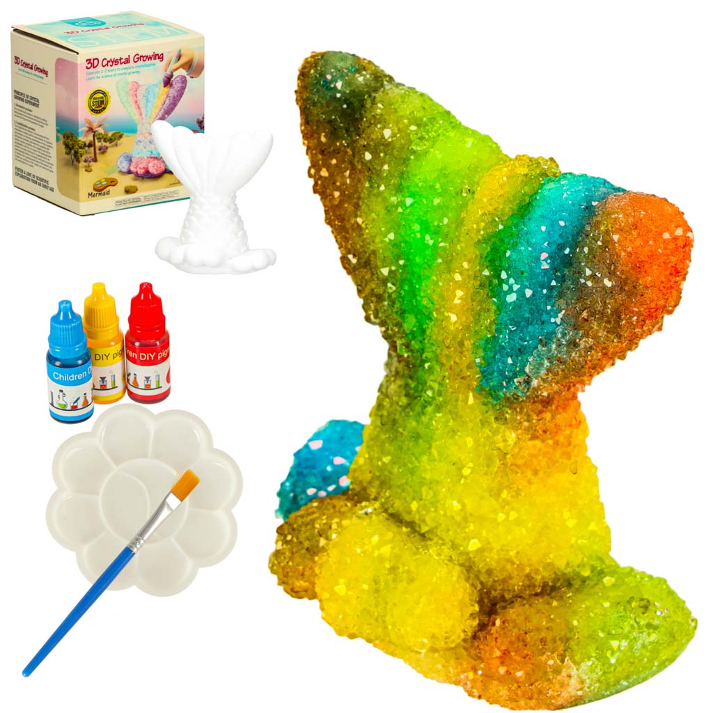 This all-in-one kit provides everything a young scientist needs to grow dazzling crystals on a plaster mermaid tail model. The process is simple, but the results are truly impressive! After growing the crystals, your child can use the included paints to customize their creation, unleashing their imagination to design a one-of-a-kind masterpiece.