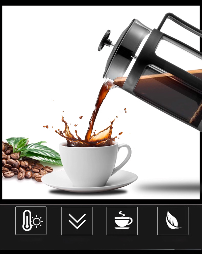Impressive French Press brewer with a capacity of 1 liter, ideal for brewing fresh and aromatic coffee or tea. Made of high quality glass, ensuring durability and resistance. Ideal for home or office use.