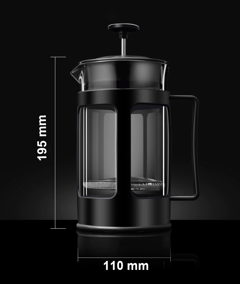 - Height: 20.5 cm (with piston handle), 19.5 cm (jug alone)