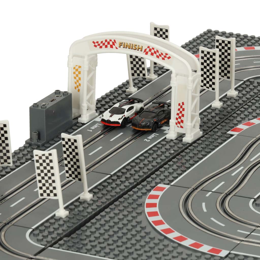 The track consists of 25 interlocking pieces that assemble into a course full of challenging turns. Children control the cars with joysticks, precisely managing their speed. This engaging play not only provides fun but also helps develop important skills.