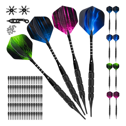 - Large Set: A complete kit for your darts game, featuring 12 darts, 100 soft tips, 2 flight protectors, 20 o-rings, and a multi-function tool.